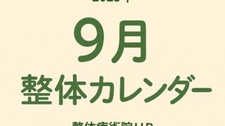 お知らせ 🗓 整体療術院UP 9月のお休みのお知らせ 整体療術院UPの2025年9月のお休みをご案内します。定休日に加え、大阪・東京での研修による不在日もございます。ご予約やお問い合わせの際にご確認ください。 2025.09.05 お知らせ