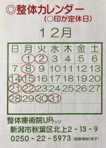 整体療術院UPは、今年も残りわずかな期間を大切に、
