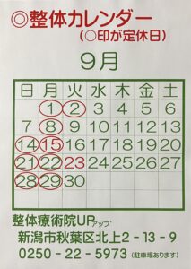 9月のお休みについてご案内いたします。
