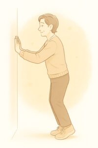 - 壁に向かっての腕立て伏せ(10回×2セット) → 上半身の筋力維持